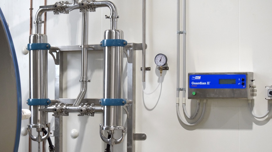 The Guardian II automated wash system adds another layer of consistency to the operation. The dual jumbo filters have been manifolded together with butterfly valves to allow filters to be changed during milking if it's needed, or to isolate one filter in times of low flow, or if there are contamination challenges.
